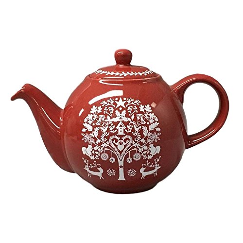 -. Feature : The Globe Teapot is designed in the UK with particular focus on functionality, with a specially designed spout to prevent drips, and an inbuilt ceramic filter in the base of the spout to remove any larger pieces of loose tea when pouring / A beautiful red and white Winter Woodland pattern, inspired by nature and Nordic folk art / Dishwasher safe. This 4 cup teapot has a 1.1L capacity / A wonderful festive present