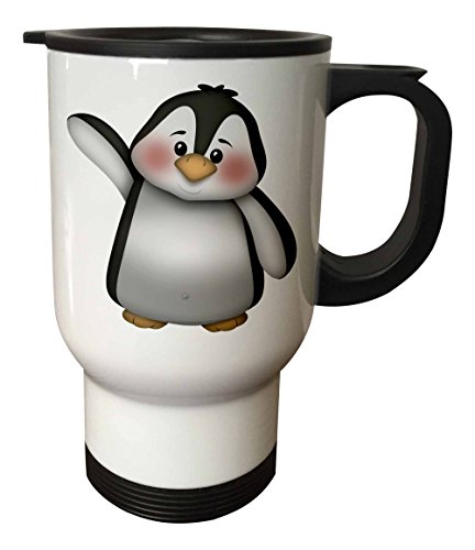 3dRose tm_217067_1 Cute Black and White Waving Penguin Illustration Travel Mug, 14 oz, White