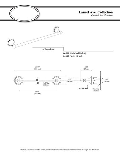 Gatco 4581 Laurel Ave. 18" Length Towel Bar, Polished Nickel