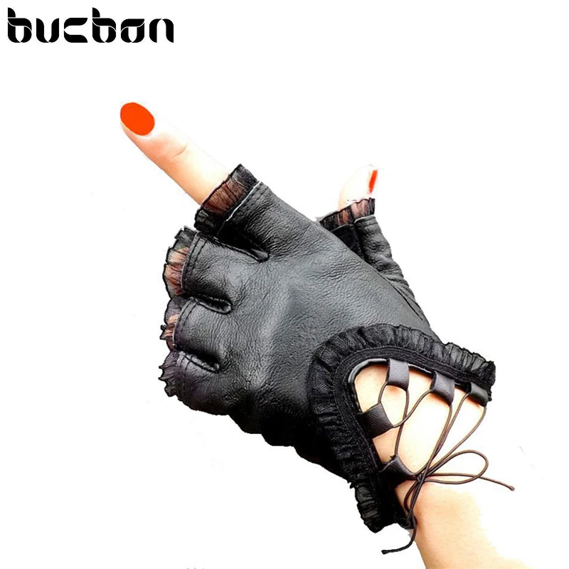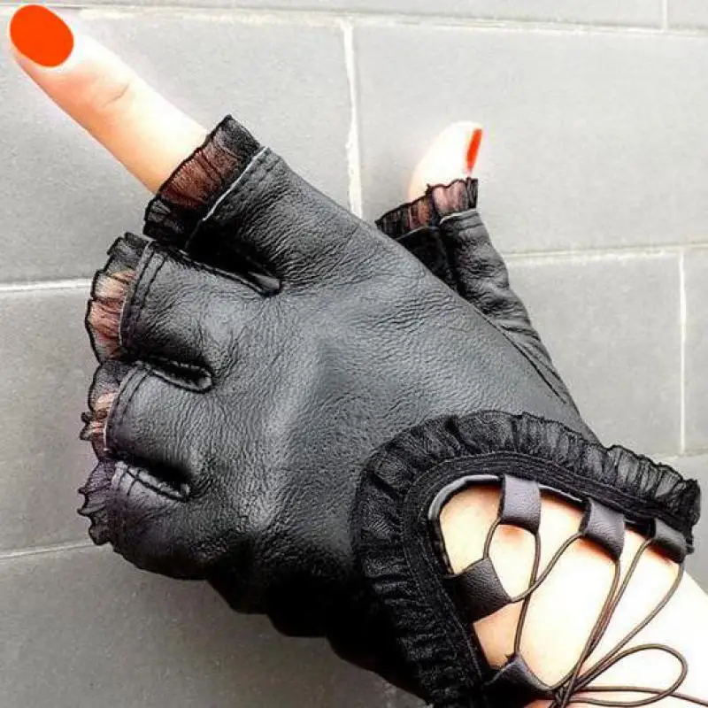 nm3: Women Half Finger Leather Gloves