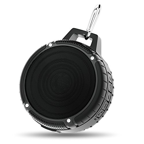 -. Feature : HIGH QUALITY SOUND WITH RICHER BASS.Equiped with latest Bluetooth V4.2 chip and 5 Watts Output Power,the speaker delivers clear sound and loud volume without distortion. The scientific space structure enhances the output bass without the loss of clearity of stereo driver. / LONGER PLAY TIME. Up to 14 hours play time at 2/3 of max volume is assured by 1200mA improved lithium polymer battery.(Most in market is 600mA) / GREAT FOR OUTDOOR ACTIVITIES.Splashproof, Rainproof, Dustproof, Sandproof, Shockproof. The silicone case and interface design ensure the speaker functions well under the harsh eviroment.Built-in Mic frees your hand while doing any activities. / SUPERIOR METAL TEXTURE. The superior metal material is applied as back cover.(Most of market is plastic)The metal snap hook helps you to hang the speaker wherever you want. / UNIVERSAL COMPATIBILITY AND ENHANCED PAIRING: Compatible with most smartphones and other Bluetooth-enabled devices. Pairing is seamless and easy to set.
