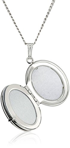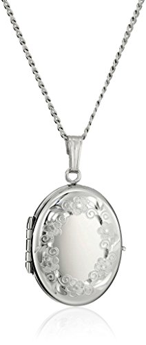 -. Feature : Sterling silver necklace featuring oval-shape locket with floral engraved border and grooved bail / 18" rolo chain with lobster-claw clasp / Made in the United States