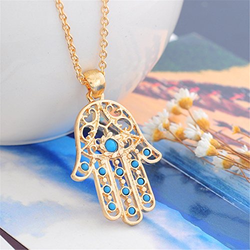 -. Title : ZARABE Charms Hamsa Fatima Hand Pendant Charm Chain Necklace Judaica Kabbalah