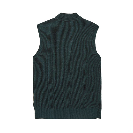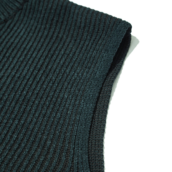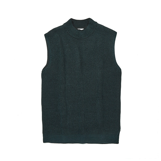 은은한 투톤 조직으로 편직한 남성 하프 터틀넥 니트 베스트.