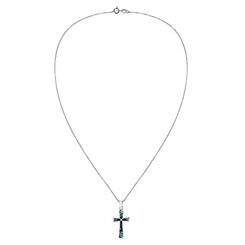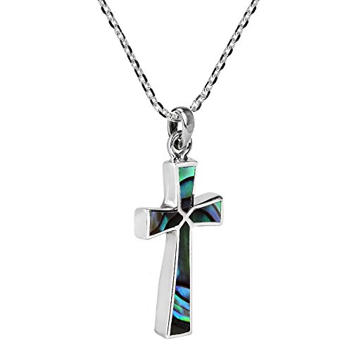 -. Feature : Material: Sterling silver | Trademark: Stamped 925 / Stone: Abalone shell | Color: Green-Tones | Finish: Shiny, Polished | Style: Daily, Religious, Symbol, Christian Cross / Pendant Measurements: 13 mm (0.51 in) wide x 31 mm (1.22 in) long (including bail) | Necklace Lengh: 18 in long x 0.75 mm thick / Bail Opening Measurement: 2 mm | Weight: 3.53 grams | Chain Type: Cable | Clasp Type: Round sP.R.Ing ring / Includes an original AERAVIDA jewelry gift box. Perfect for gift giving to someone special or keep for yourself!