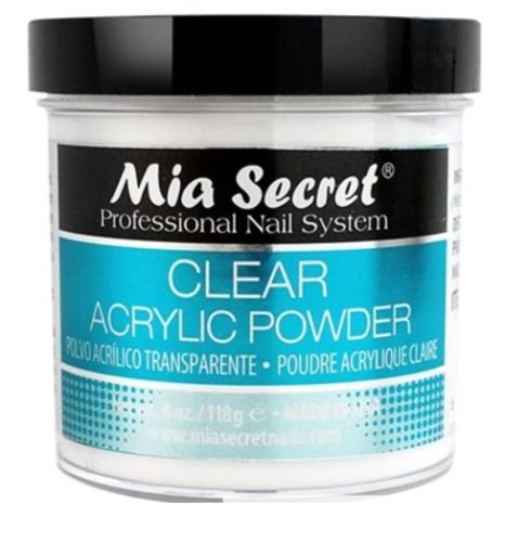 Mia Secret professional acrylic clear powder. 4 oz. Acrylic powder is Polymer that gives you flawless consistency and superior adhesion. It is a self-leveling polymer that requires minimum filing, a non-yellowing formula that provides clarity and strength.