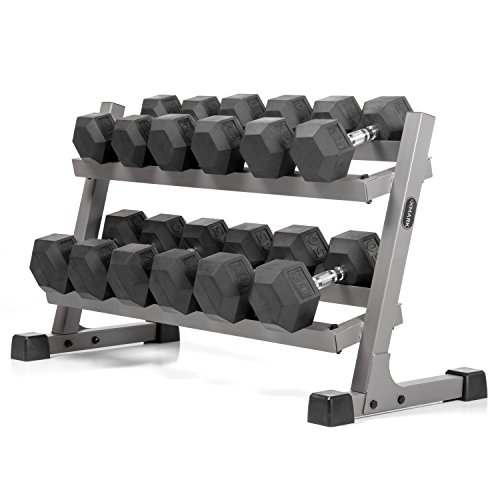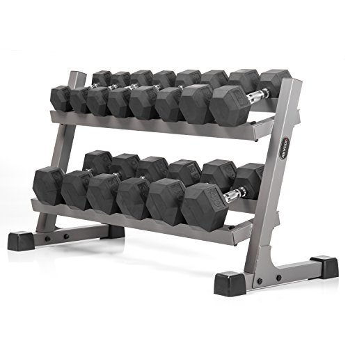 Studio : XMark Fitness Publisher : XMark Fitness Binding : Misc. Product Description Forget the gimmicks of sissy infomercials and start training with intensity! This package from XMark Fitness will supply your home gym with its most valuable piece of equipment. The wide range of exercises you can do with dumbbells will ensure a full body workout. With a wide range of pairs, the XMark dumbbell set is perfect for beginners or seasoned athletes. Each Hex dumbbell features a knurled, chrome plated handle with a comfortable feel. Each dumbbell is one piece cast iron with tough rubber casting made from recycled rubber. Store your weights easily with our angled design and safely with the anti-slip rack. Each rack has enough storage space to eliminate "over-crowding" of the weights unlike most brands. 0