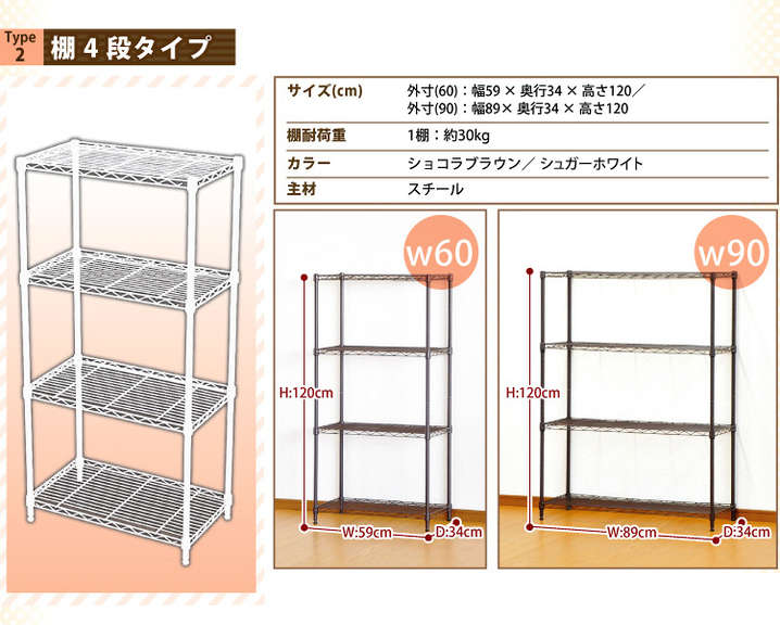 このページはメタルシェルフ 【-ラテ-】 60cm幅/4段のページです