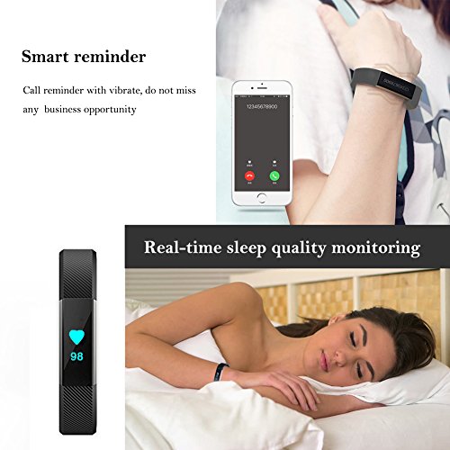Sleep Monitor : automatic monitoring sleep duration and sleep quality, sleep can view the trend to improve sleep, and through the vibration alarm clock wake you quietly; Real-time call, message, SMS alert and display caller id, message content on the 0.86 inch OLED screen with vibrating.