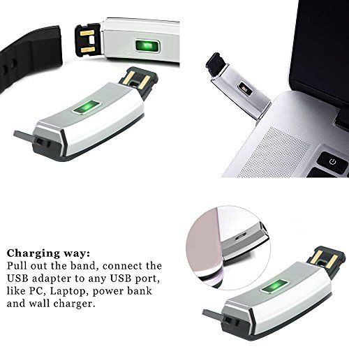 Anti-dust and Waterproof rating: IP 57 Life-level waterproof, sweat-proof, rain-proof, but do not wear it when you are showering and swimming. The host comes with a standard USB port, specially designed to charge through your PC or mobile driver. So it can be charged with a computer or power bank without the need for other charging components. Just need to charge 1.5h hours and then you get a 7 days standby fitness tracker.