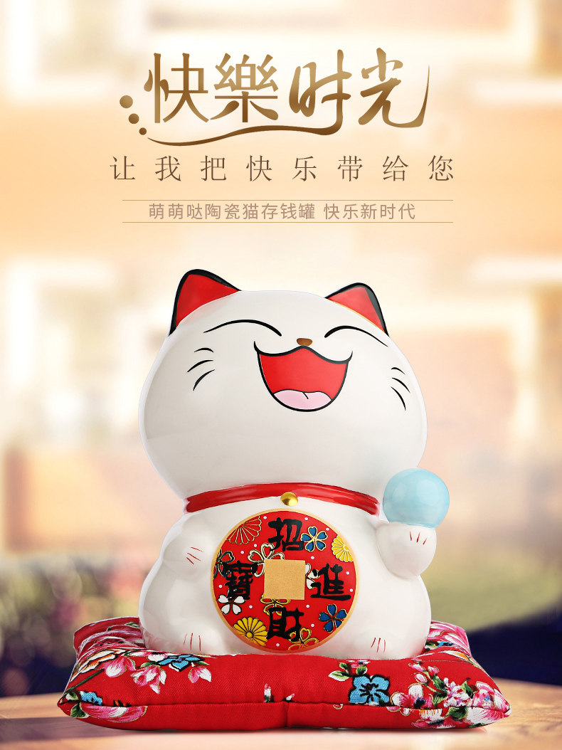 招财猫摆件 开业陶瓷小号礼品储存钱罐 店铺招财猫0226