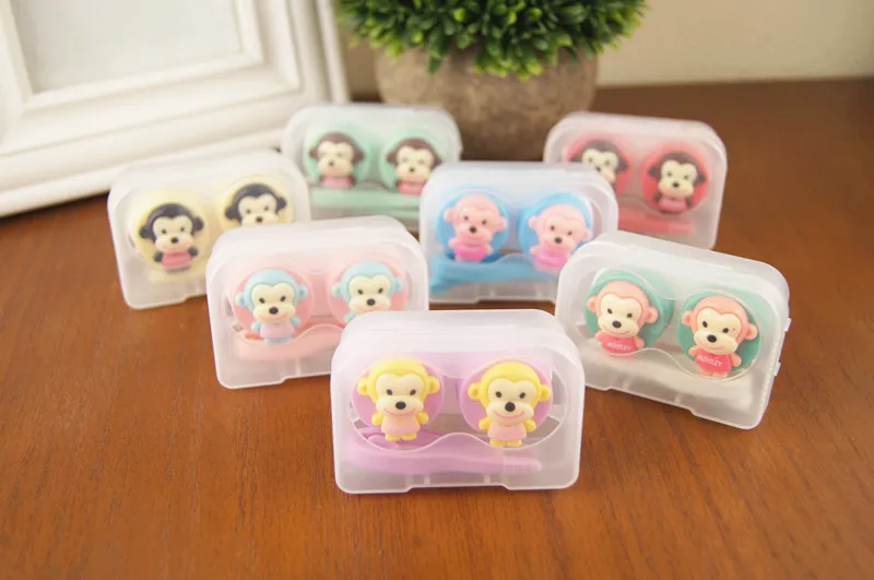 원숭이 모델링 포켓 미니 콘택트 렌즈 케이스 여행 키트 쉽게 캐리 거울 컨테이너 렌즈 안경 상자 눈 케어 키트 K022