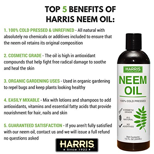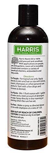 -. Title : Harris Neem Oil, 100% Cold Pressed and Unrefined, Cosmetic Grade, 16oz