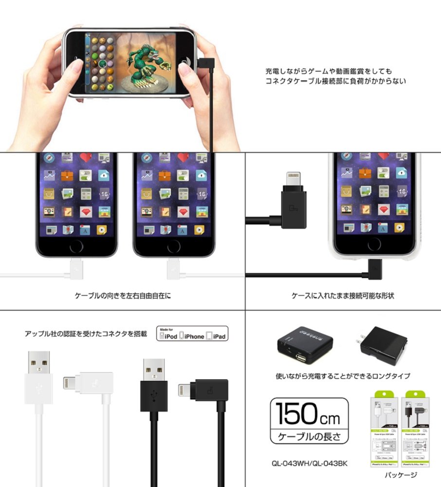 MFi Certified Apple Licensed L Shaped USB Lightning and Charging Cable (150 cm / Black)