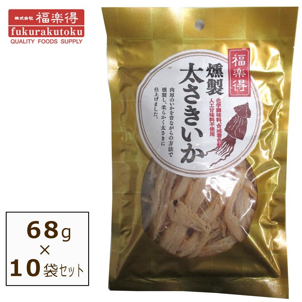 肉厚のいかを昔ながらの方法で燻製し、柔らかく太さきに仕上げました。化学調味料・合成着色料・人工甘味料不使用!! |