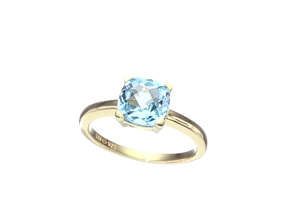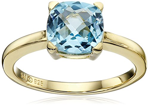 Sterling Silver with Yellow Gold Plating Swiss Blue Topaz Cushion Ring, Size 7