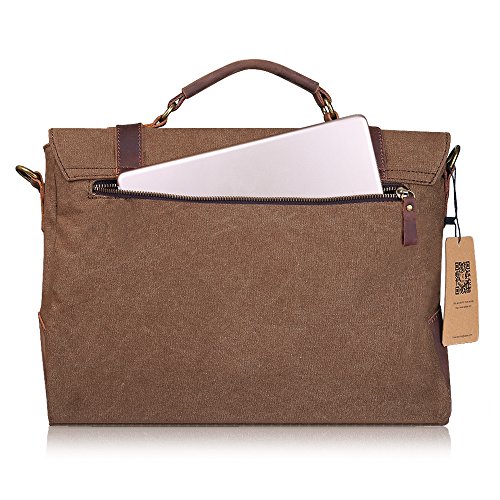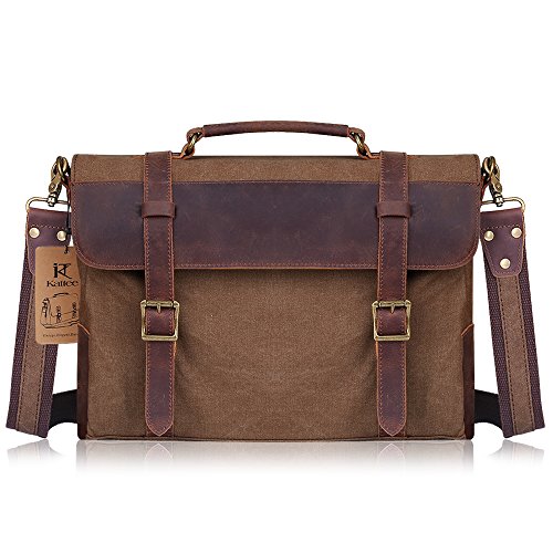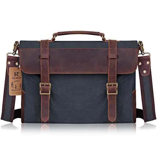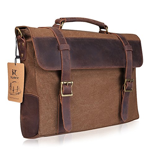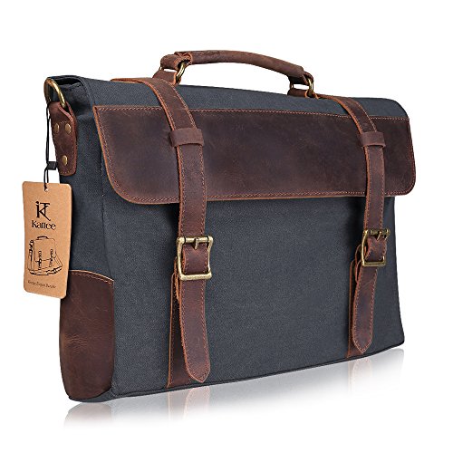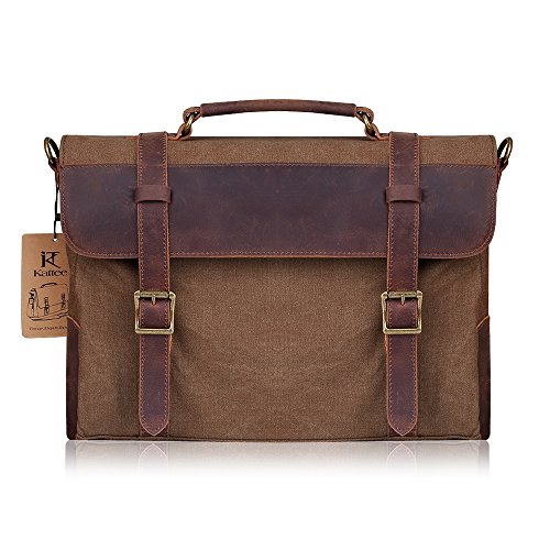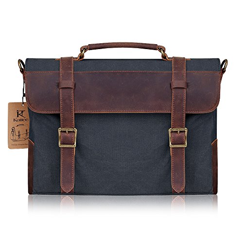 -. Brand : Kattee -. Department : unisex-adult -. Feature : Thick high density canvas and real Crazy Horse cow leather / The main flap has magnetic buttons for quick access to the main compartment while the inside pockets are secured by zipper, safe and easy to use / Top carry handle, thicken shoulder straps which is adjustable with a buckle, antique finish brass metal buckles / Interior with 2 compartment pocket and 1 compartment zipper pocket fits A4 magazines; a back wall zipper pocket can hold your small personal effects; 2 open pocket and 2 pen holders; Back exterior zipper pocket can hold your IPAD AIR(9.7") / This canvas & leather satchel shoulder bag is general used for men and women, designed for a variety of occasions like school, office, traveling or other daily use -. Label : Kattee -. Manufacturer : Kattee -. Model : XZ452 -. MPN : XZ452 -. PackageQuantity : 1 -. PartNumber : XZ452 -. ProductGroup : Apparel -. ProductTypeName : LAGE -. Publisher : Kattee -. Size : Large -. Studio : Kattee -. Title : Kattee Canvas Genuine Leather Laptop Messenger Shoulder Bag