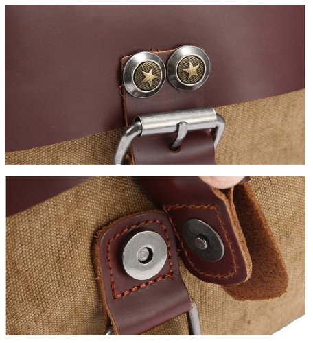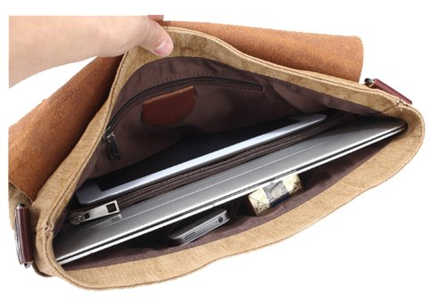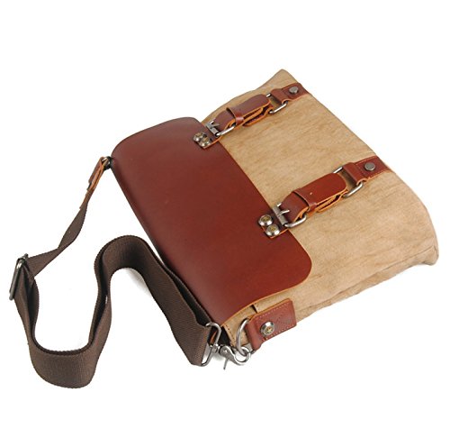 -. Brand : HindaWi -. ClothingSize : One Size -. Department : mens -. Feature : Eco-friendly casual life style,high density canvas, durable and fashionable. / Genuine leather decoration,brass hardware. / Adjustable shoulder strap for easy and comfortable carrying. / Can fit a small laptop/netbook or tablet,iPad and A4 size books. / Overall dimension: Approx.14.2"L x 10.6"H x 3.9" W. -. ProductGroup : Apparel -. ProductTypeName : APPAREL -. Size : One Size -. Title : HINDAWI Vintage Genuine Leather Canvas Messenger Crossbody Shoulder Bag