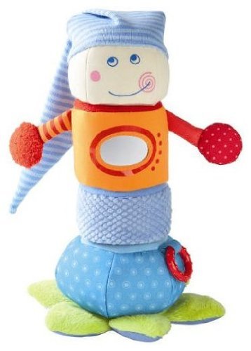 Building fun with the cute jelly bag cap chap; the 5 fabric pieces can be stacked in ever new combinations thanks to the hook and loop fasteners. Includes mirror foil, rattle and teething elements. Material: cotton/polyester.