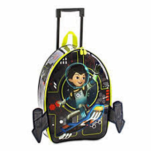 -. Feature : PVC shell with allover artwork / Miles' shoulder harness lights up, Flashing circling lights, Rocket-styled case with 3-D wings on side / Retractable handle, Top carrying strap, Main compartment includes zip closure with two zip puls, Two rear wheels, ID tag holder with clear window display / Requires 2 x CR2032 button cell batteries, included / All man-made materials, 18'' H x 13'' W (19'' with wings extended) x 6 1/2'' D, Handle extends to 37'' H