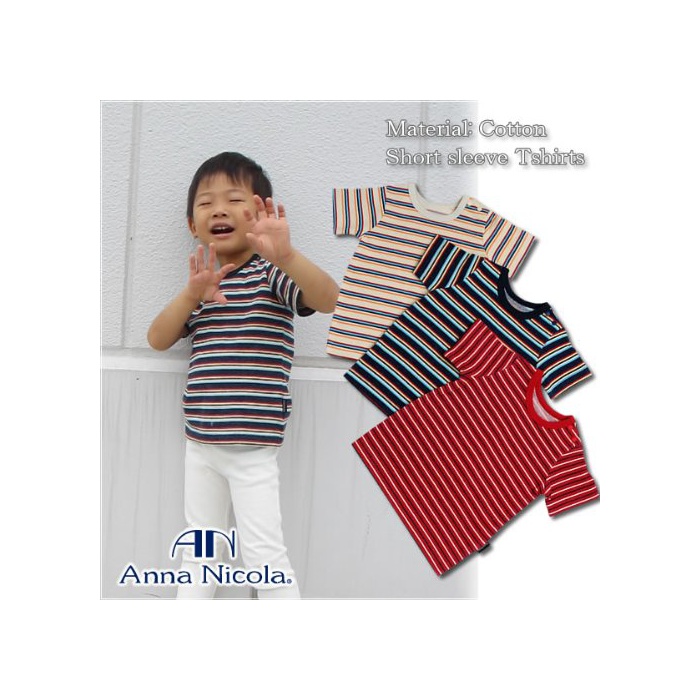 Anna Nicola(안나 니콜라) 베이비용 반소매T셔츠 멀티 보더무늬 (90cm,네이비)
