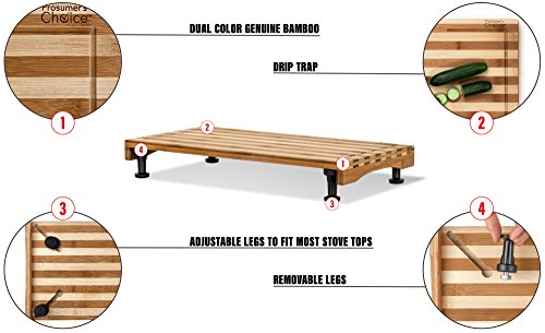Prosumer's Choice Dual-purpose Bamboo Stovetop cover workspace and Countertop cutting Board with adjustable legs