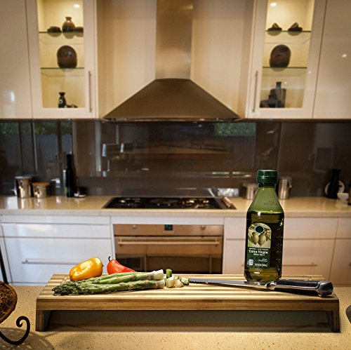 EXPANDS KITCHEN SPACE : Dual colored, beautiful and a practical addition to large, medium and small kitchens made of premium grain bamboo wood that can be used as a traditional cutting board on kitchen counters or placed over gas or electric stovetops to maximize mincing, dicing, chopping space or simply to hold extra items in your kitchen area.