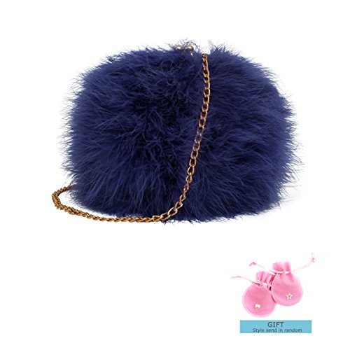 Zarapack Women's Faux Fur Fluffy Feather Round Clutch Shoulder Bag