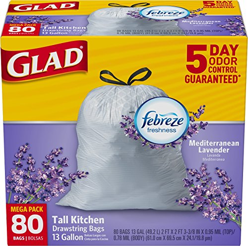 Glad OdorShield Tall Kitchen Drawstring Trash Bags - Febreze Mediterranean Lavender - 13 Gallon - 80 Count
