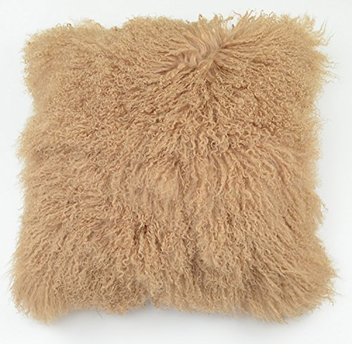26"x 26" Oversized Tibetan / Mongolian Lamb Fur Pillow Cover (Dark Beige)