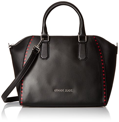 Armani Jeans Eco Leather Shopper with Perforated Details and Zipper Closure