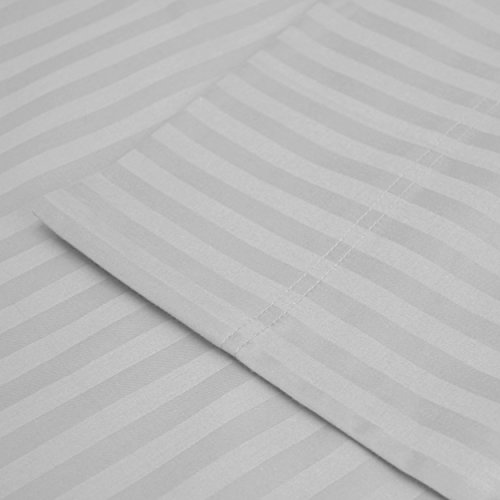 100% Egyptian Cotton 650 Thread Count Twin XL 3-Piece Sheet Set, Deep Pocket, Single Ply, Stripe, Silver