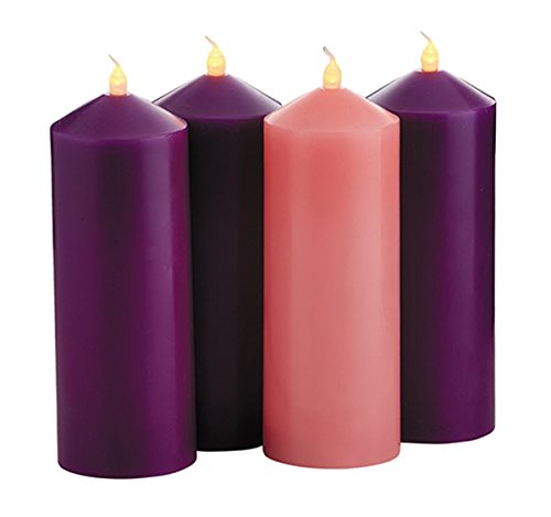 Purple and Pink Flameless LED Pillar Advent Candle Set of 4, 9 Inch