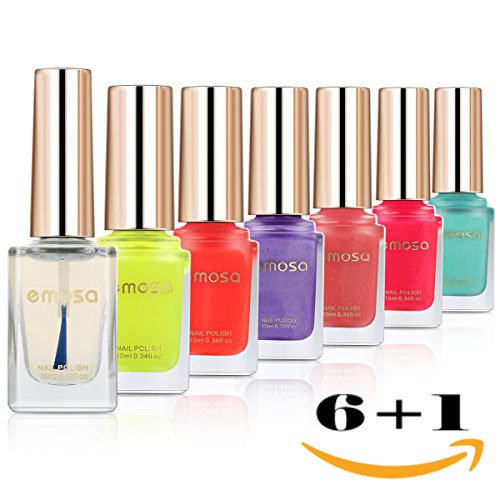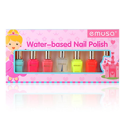 -. Title : Emosa Nail Polish Set - 100% Non-Toxic Water-based Peelable Full Size Lacquer Lot of 7 Pcs (6 Pcs 10ml Colors+1Pcs 15ml Base/Top Coat) for Girls