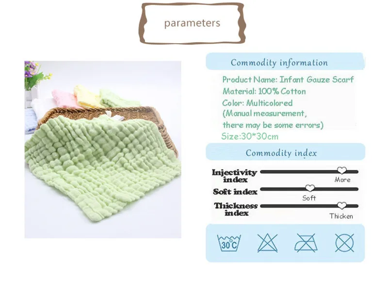 Size:30x30cm Soft Baby Guaze Washcloth