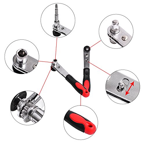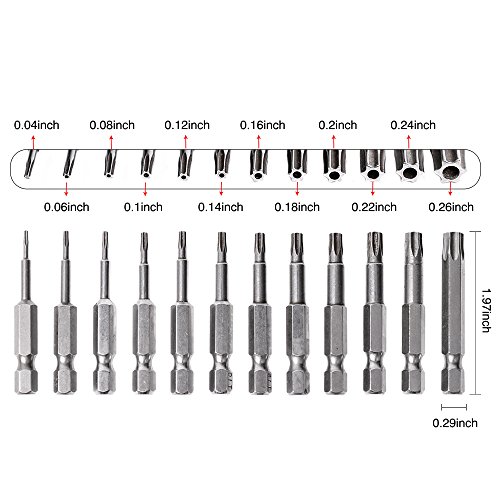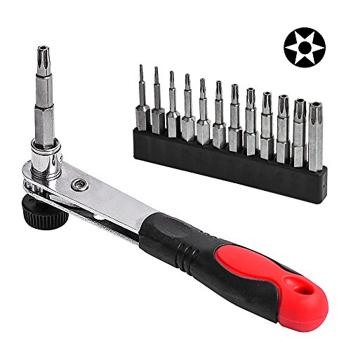 Right Angle Ratcheting Screwdriver with Torx Screwdriver Bit Set, 1/4-inch Hex Shank, S2 Material, 50mm-length, Magnetic, T5-T40(Pack of 12)