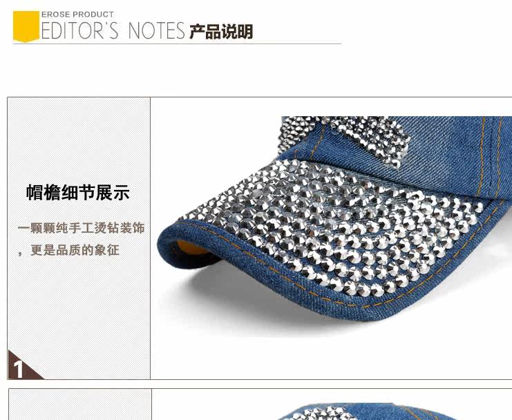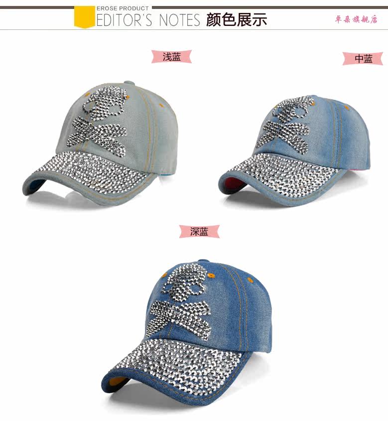 卓朵烫钻印花遮阳牛仔棒球帽 女 韩版潮夏天太阳帽子 运动 鸭舌帽
