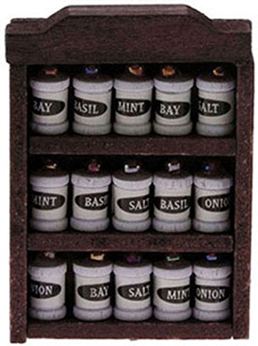 - This is a wall mount spice rack with 15 removable spice bottles. Mount this to your miniature wall with glue or wax (not included).