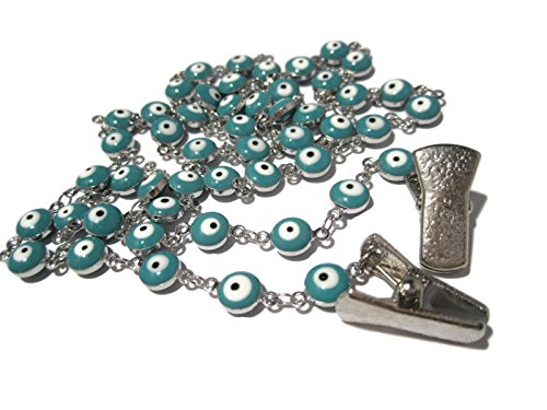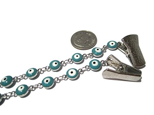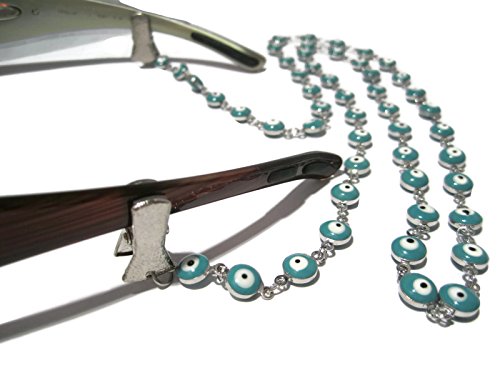 -. Title : Light Blue Evil Eye Clip Eyeglass Holder - Chain Eyeglass Holder - Eyeglass Holder with Clips