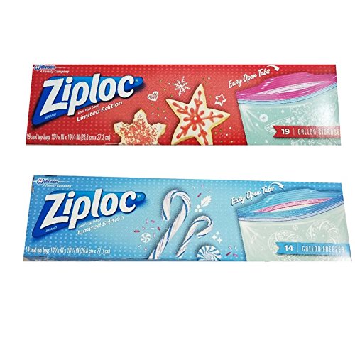 Ziploc Seal Top Bags - 14 Gallon FREEZER and 19 Gallon STORAGE -Limited Edition Holiday Designs (Holiday Star and Candy Canes)