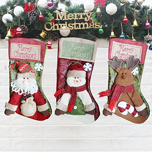 Christmas Decorations Personalized Fireplace Stockings 18'' 3D Embroidery Hanging Xmas Tree Toys Gift Candy Ornaments Santa's Family Holder for Kids (10-Set of 3, 18")