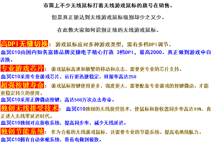 富德血冥C10 无声静音版无线游戏鼠标台式笔记本电脑无限电竞鼠标