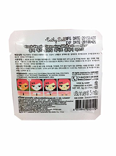 -. Feature : 10 packets of Cathy doll black heads cleansing white clay mask (5 g/ packet) / clay mask will be in the color of White, removing Black Heads that clogged in your pores / Direction: apply clay mask onto clean face, avoiding eyebrows hairline and mouth. leave on until completely dry and then gently peel away, Start peel off at the bottom to top of your face. however you can peel off it with warm water if you feel pain. for best results request 2-3 times per week. sensitive skin might experience a slight temporary tingling. / free!! sticker Thai_product, souvenir from Thai_product.,High Quality & Services by Thai_product.