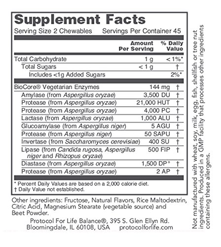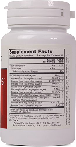 HOW IT WORKS: Modern lifestyles and eating habits can sometimes interfere with quality of nutrition, as well as with healthy digestion. ProtoZymesTM is a broad spectrum digestive enzyme formulation designed to support optimal breakdown and absorption of proteins, fats, and carbohydrates, including lactose, to ensure maximum nutritional value for you and your children.* Controlled laboratory studies show that these enzymes are not degraded by stomach acid and are effective throughout the entire pH range of the digestive system.* ProtoZymesTM has been designed especially for children, but it can also be used by adults to enhance bioaccessibility of nutrients consumed in foods.*Protocol For Life Balance® is an A-rated GMP manufacturer of pharmaceutical grade dietary supplements created for healthcare practitioners. Our product line is comprised of effective, science-based formulations intended to address common nutrient deficiencies and support healthy physiological function. These formulations are based on the latest advances in nutritional science and incorporate trademarked ingredients of the highest quality. Our serving sizes are based on doses used in clinical trials and other published data, and the ingredients used in our products have been tested for efficacy in clinical trials and laboratory studies.