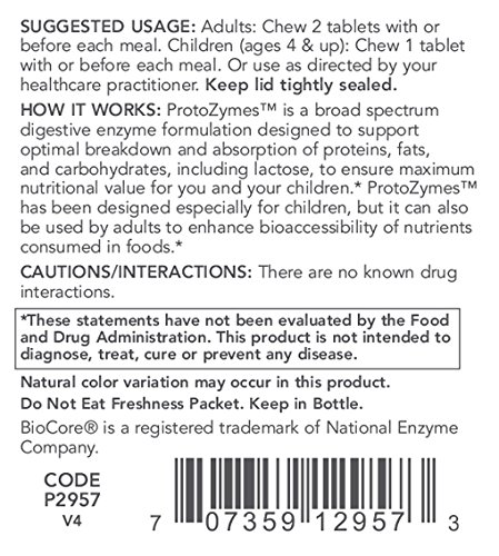 SUPPORTS DIGESTIVE PROCESS: ProtoZymesTM is a broad spectrum digestive enzyme formulation designed to support optimal breakdown and absorption of proteins, fats, and carbohydrates, including lactose, to ensure maximum nutritional value for you and your children.