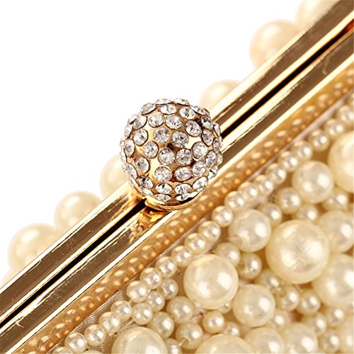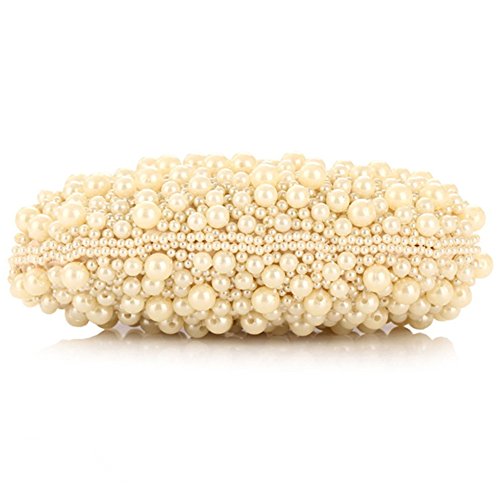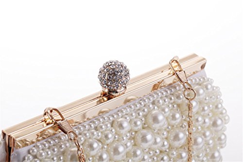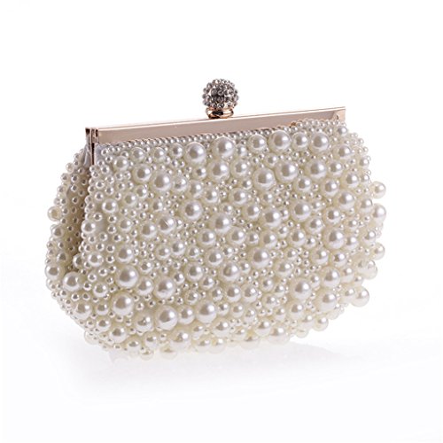 -. Title : ERGEOB® Damen Clutch Abendtasche Handtasche Handmade Clutch Kleine Perlen Diamant Ring Schnalle Brauttasche Hochzeittasche Weiss
