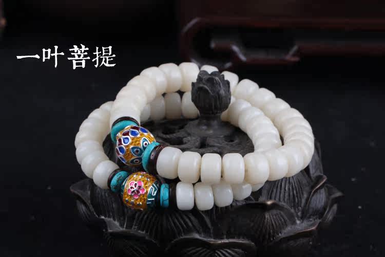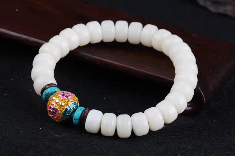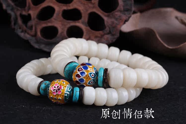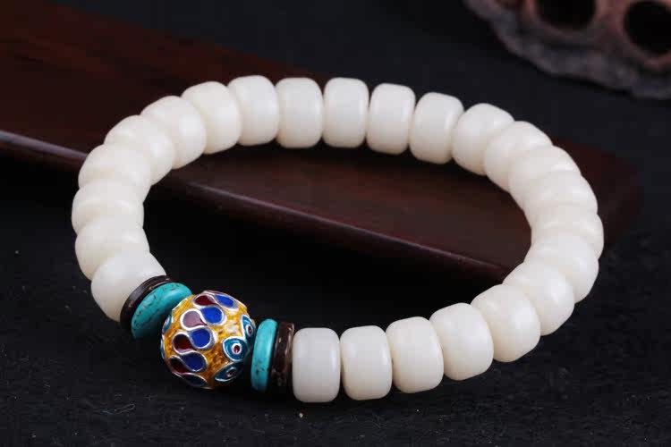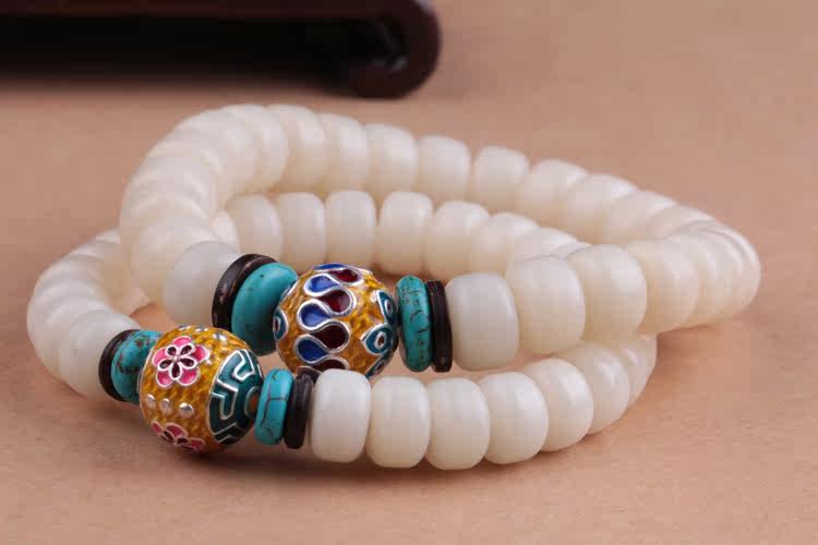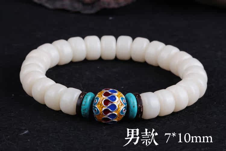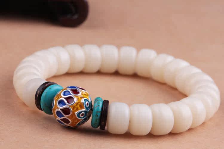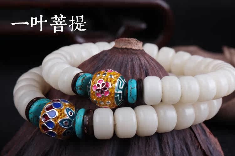 Material: natural white Bodhi root barrel beads S925 silver gilt enamel piece of coconut shell turquoise