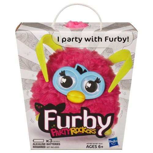 Furby Loveby Time to dust off your Furbish dictionary and get ready to party with your Furby Party Rockers creature! These critters are born with attitude and won't let anyone change them. But they love to mingle, so take your Party Rockers creature to a party! The party gets wilder as you rock it, shake it, pull it and party on. How will your Furby (sold separately) react to all this partying? Play some tunes, pull some tails, and party on with your Party Rockers creature! You can also download a free app to help you translate Furbish, virtually feed party snacks to your creature and use other interactive features. App is optional and works with iPad, iPod touch and iPhone with iOS 4.2 or later. Product Features The Party Rockers creature is bilingual just like your Furby It speaks Furbish and English ow your Furby reacts to your Party Rockers creature might surprise you (Furbys and Party Rockers creatures sold separately.) Party Rockers creature responds to your voice and to music Pet its head, tickle its tummy, or pull its tail and see what happens! Product Measures: 4" x 5.5" x 6.7" Recommended Ages: 6 years and upFeature