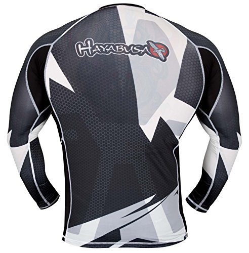 ReleaseDate : 2013-08-29 Studio : Hayabusa Fightwear Publisher : Hayabusa Fightwear Binding : Sports Product Description The all-new Metaru 47 Rashguard from Hayabusa is easily the most innovative compression garment the combat world has ever seen.? This premium rashguard features exclusive, cutting-edge fabric technologies designed to provide ultimate comfort and flexibility, thermoregulation and anti-odor performance. Not to mention, it features flatlock stitching and fiber-fused graphics to prevent chafing and provide uncompromised durability. For the latest in compression performance, upgrade to the new Metaru 47 Rashguard today. 0