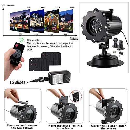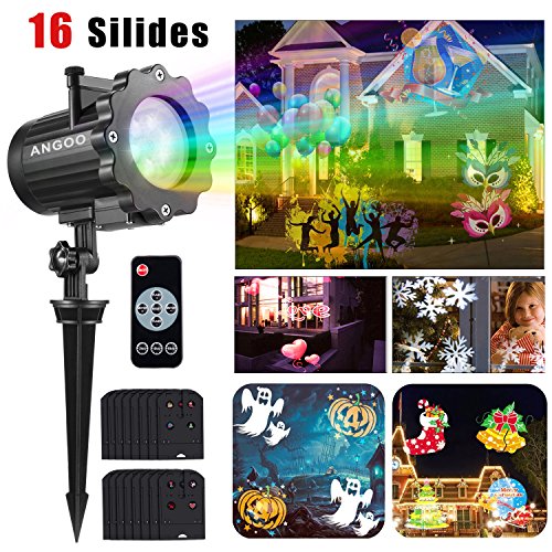 ANGOO Led Christmas Light Projector, 2017 Upgrade Version 16 Interchangeable Slides Waterproof Garden Lighting with Remote Control for Christmas Halloween Birthday Wedding Outdoor Indoor Home Decor